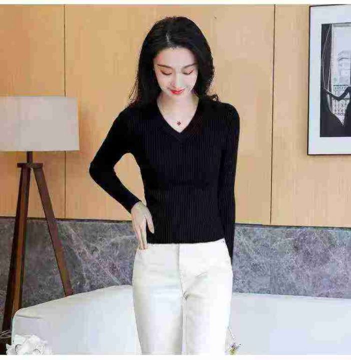 V领打底衫女春秋季新款修身高级感紧身针织上衣,独立包装,均码,1610件,清6.8,分➕1