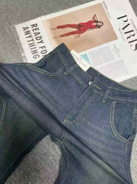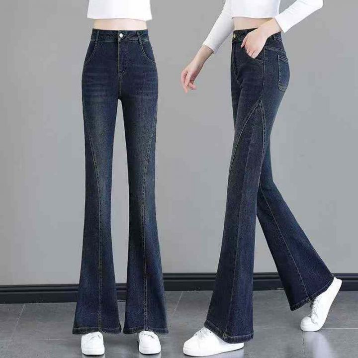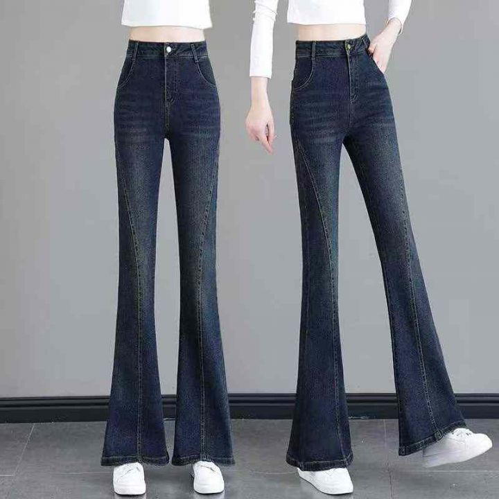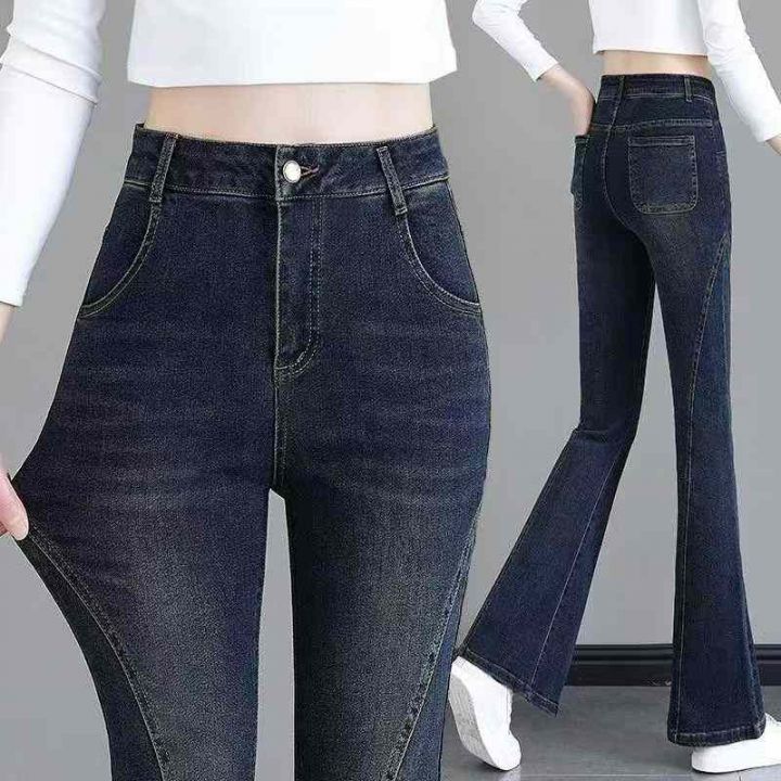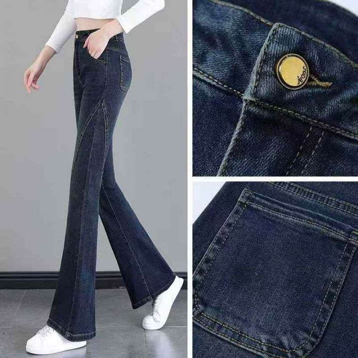 秋冬新款弹力复古蓝大码胖mm高腰显瘦喇叭牛仔裤,独立...