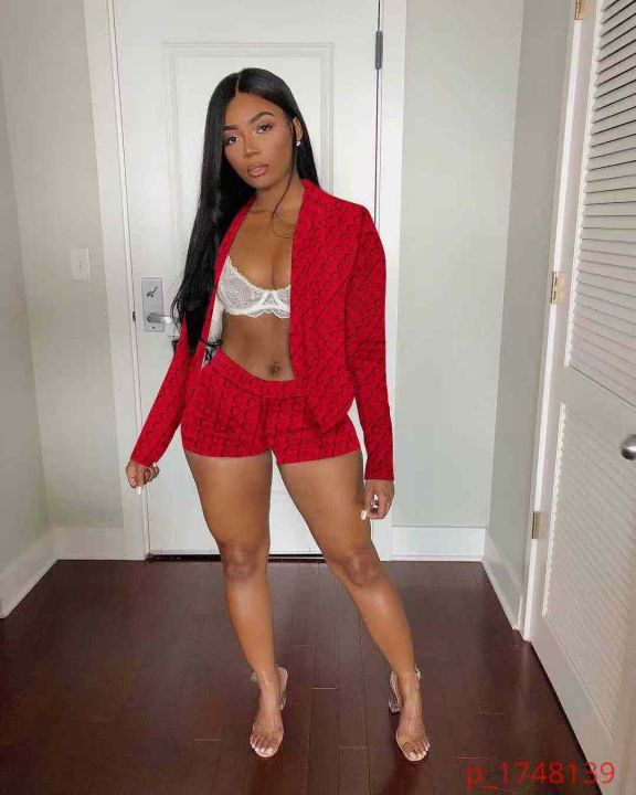 7.8清欧美时尚新品秋季小西装外套+短裤印花套装两件套 ,图片款,数量:139...