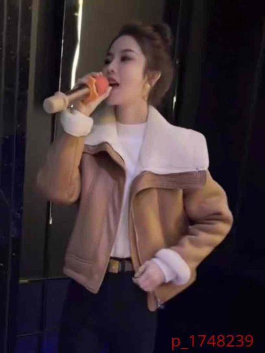 [爱心]35元欧货皮毛一体短外套女2025冬季新款时尚显瘦加绒加厚翻领皮衣上衣...