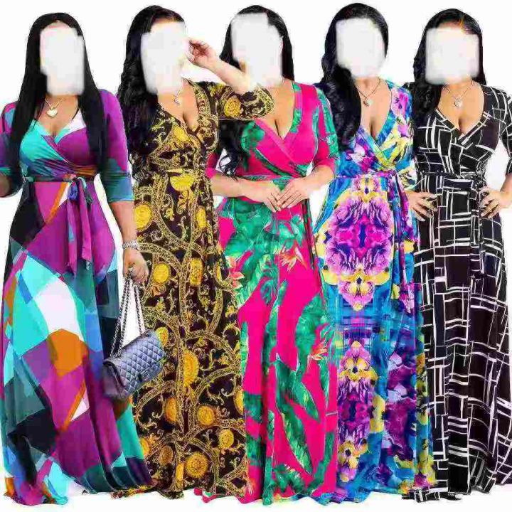 欧美大码连衣裙大长裙系列款 颜色花型多样 S-5XL原包装 还剩8000件左右 仓库现货