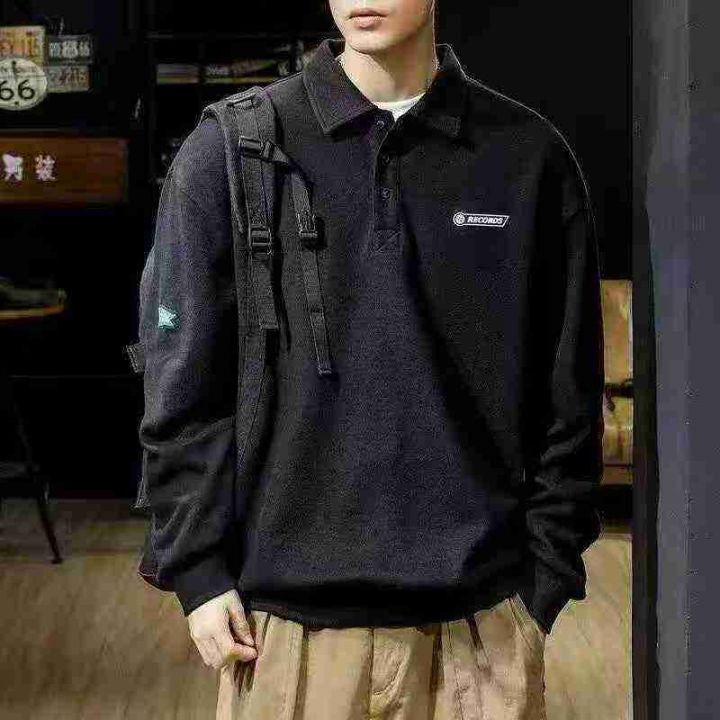 美式高街polo衫男士加绒卫衣长袖新款翻领上衣,数量270件,码数m-3xl,独立包装,后领包边,全清8.8元