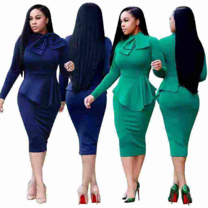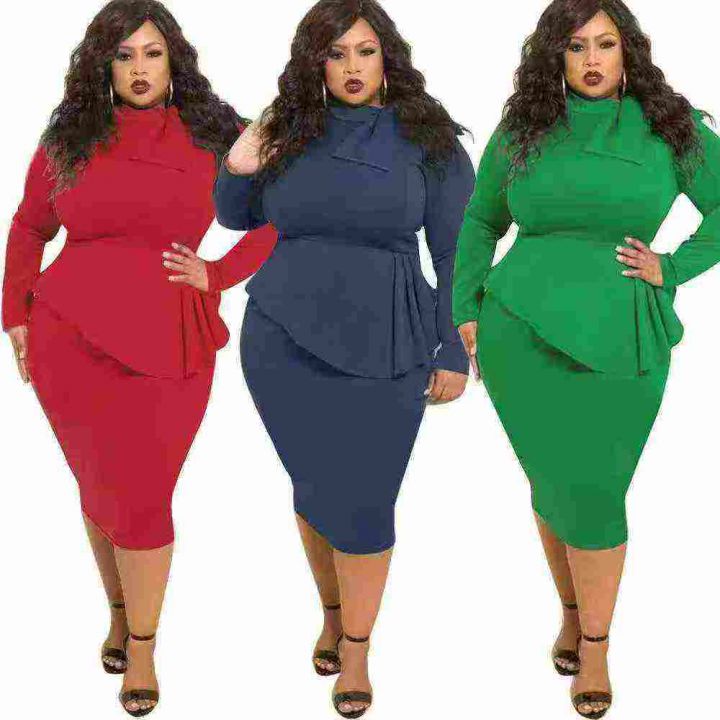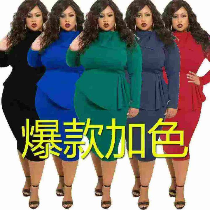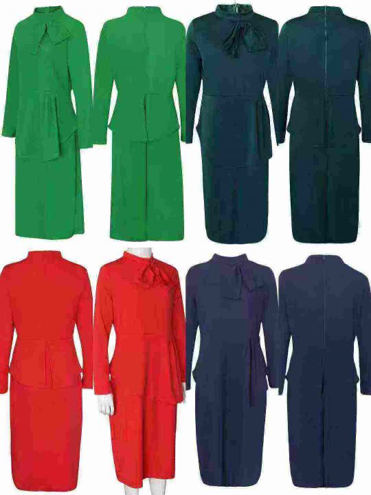 Plus Size Fake Two-pcs Ruffle Bow Dress 1200 pcs , Size:XL-5XL,5 colors