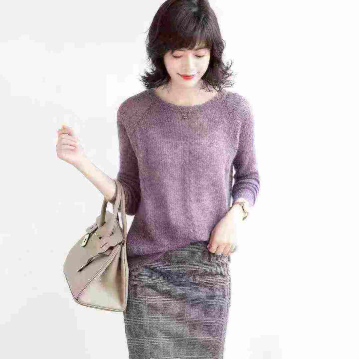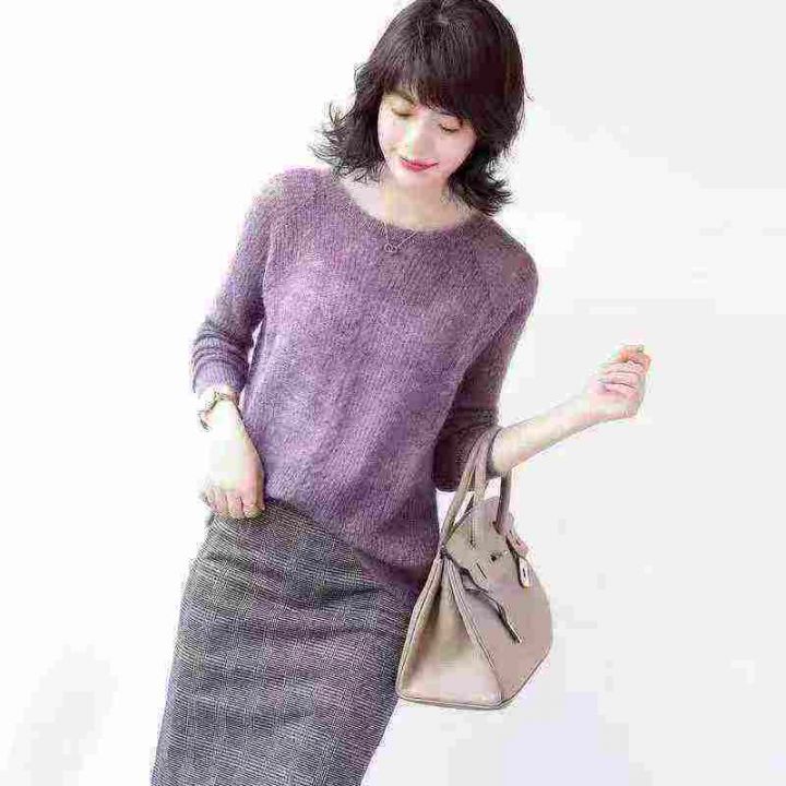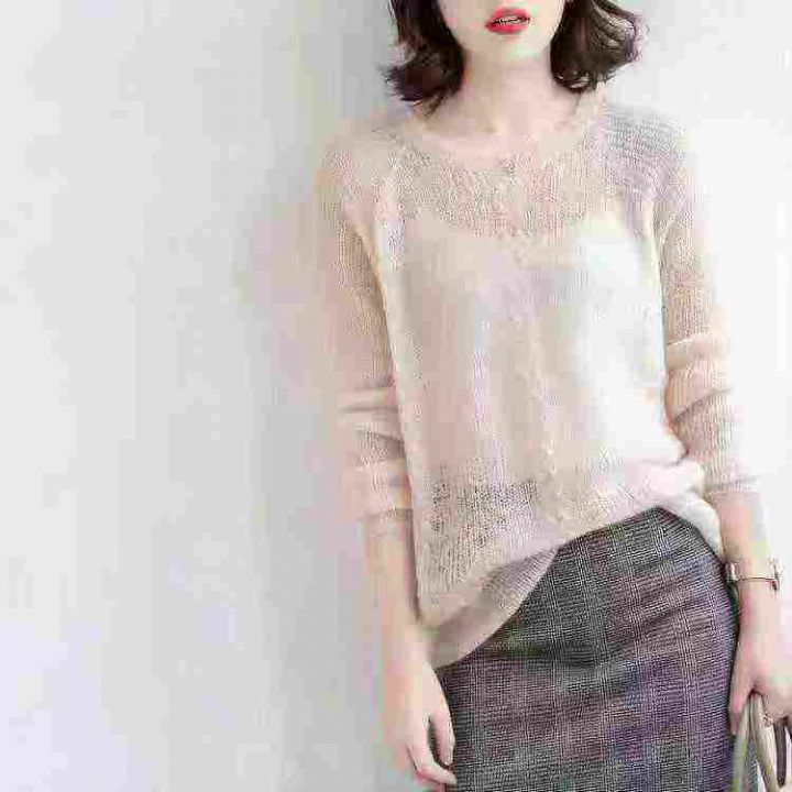 2025年春秋新款时尚百搭圆领长袖针织衫宽松显瘦打底上衣,独立包装,均码,1350件,清4.8,分➕1