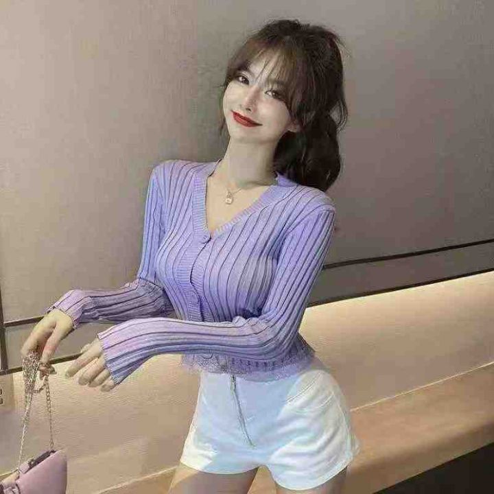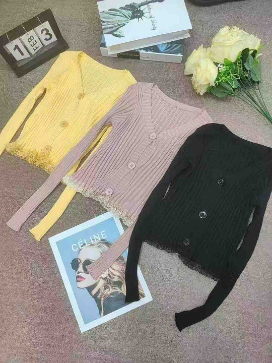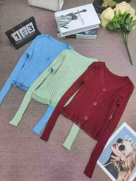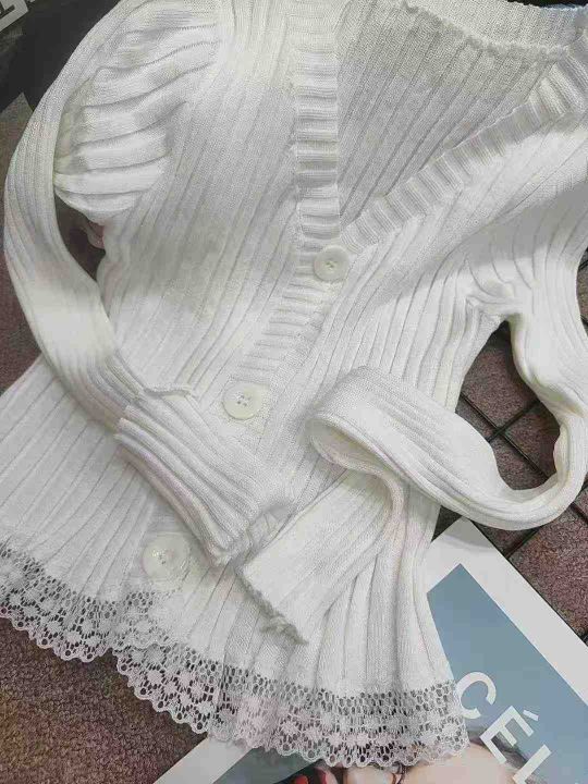 韩版2025chic长袖针织开衫女装外套毛衣春秋新款修身蕾丝边开衫,独立包装,均码,950件左右,清8.5,分➕1