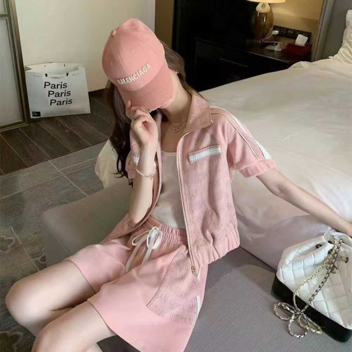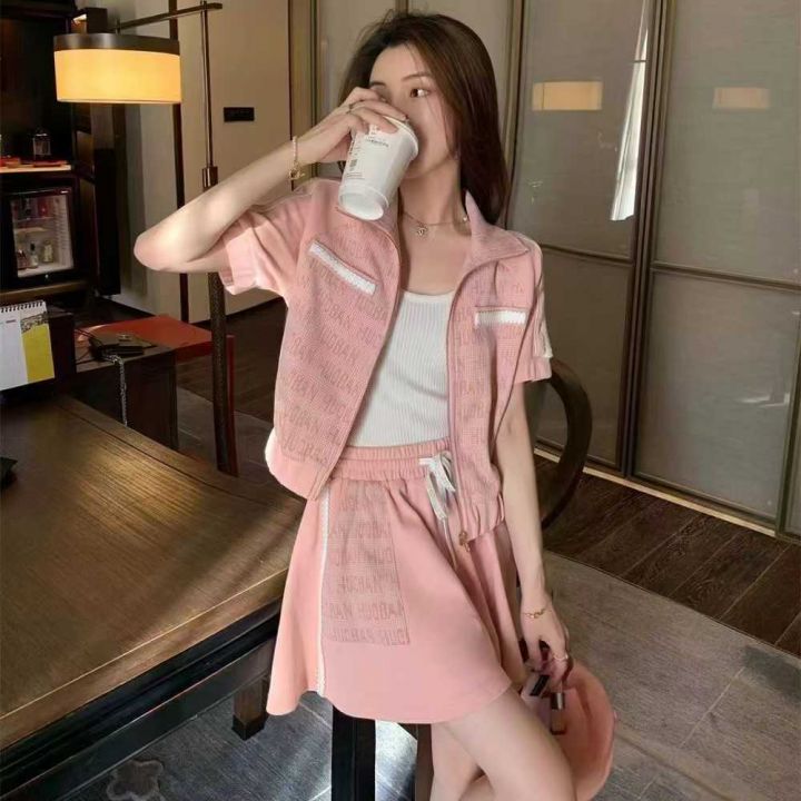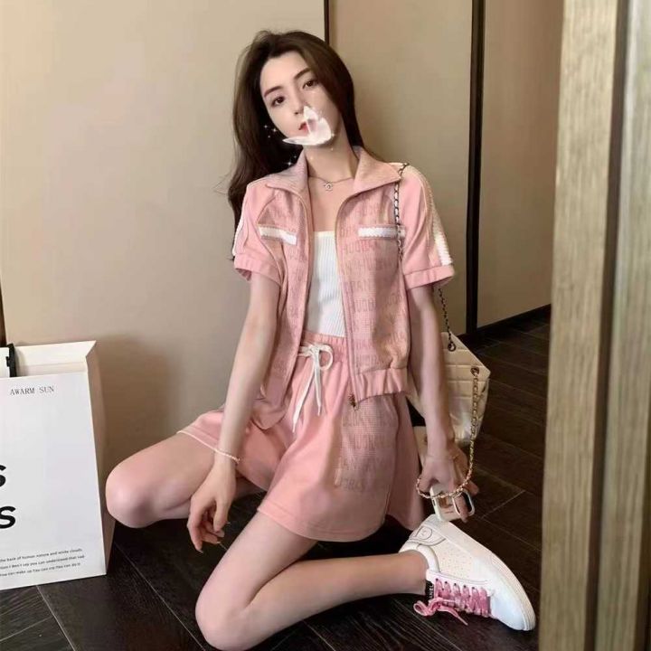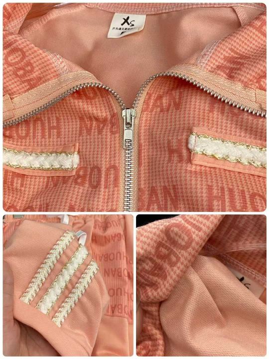 运动休闲小香风套装115套,清8.9,拉链立领上衣,下摆...