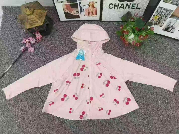 统一品牌童装印花防晒衣,数量2500件左右,尺码110--160,两个色,后领包边,锦纶氨纶面料,独立包装带吊牌,大货干净整洁质佳!模特图供参考