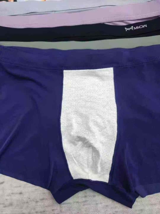 40000条猫人冰丝无痕男士平角内裤,轻薄抗菌透气,A类婴儿棉档,高弹力,有的有标有的没标,做工质量很好,L--4XL,五件一包装200件一份4.5 清货来聊