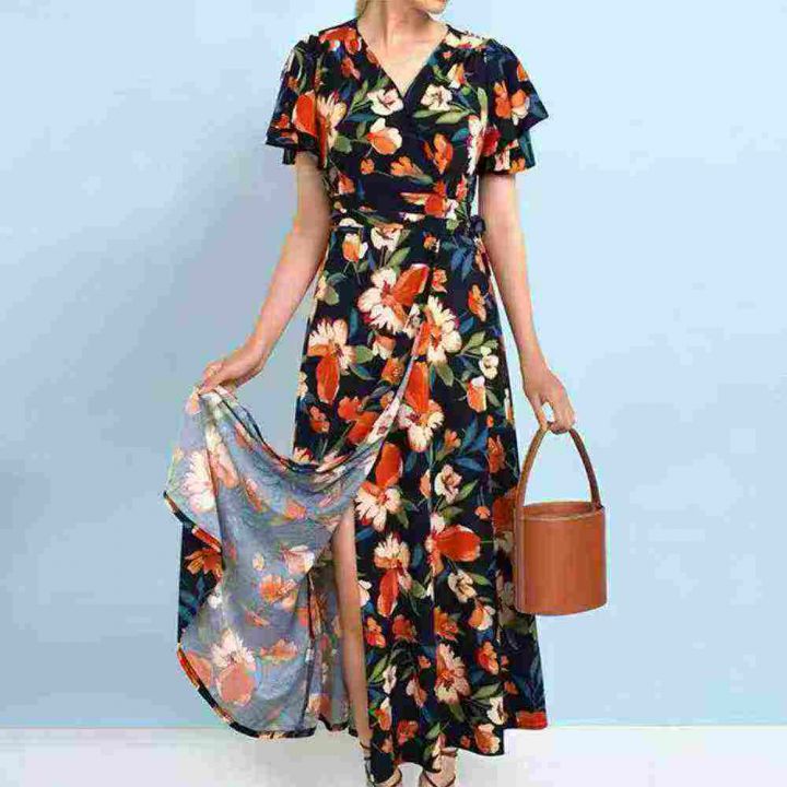 6.9清电商仓回收164件碎花度假风一字肩连衣裙,码数S-XL。裙子带内衬,质量...
