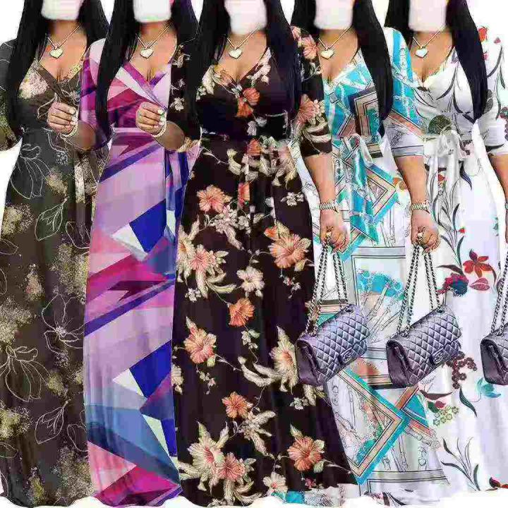 欧美大码连衣裙大长裙系列款 颜色花型多样 S-5XL原包装 还剩8000件左右 仓库现货