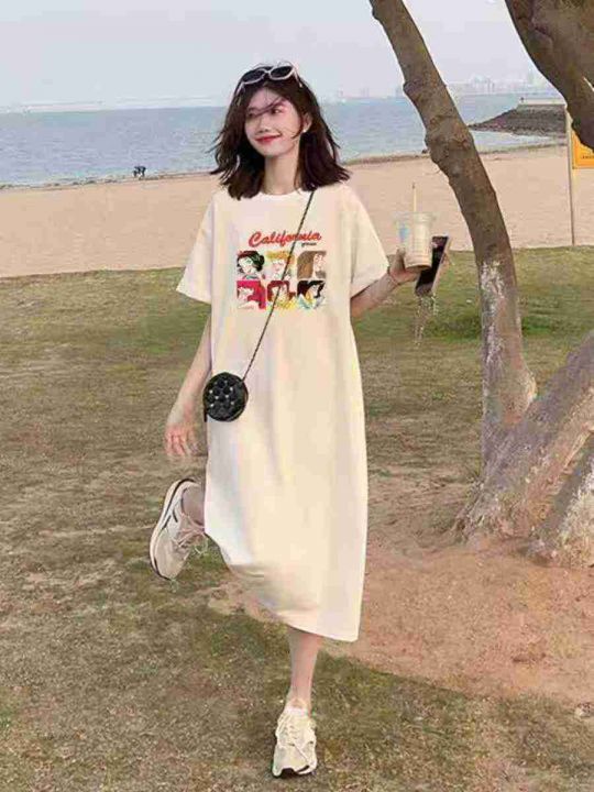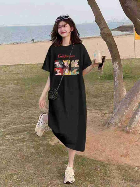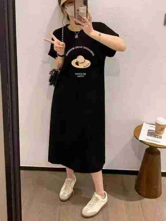 8.8清160件大码女装纯棉T恤胖mm加肥遮肚显瘦长款连衣...