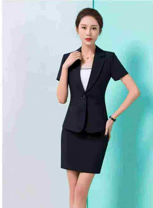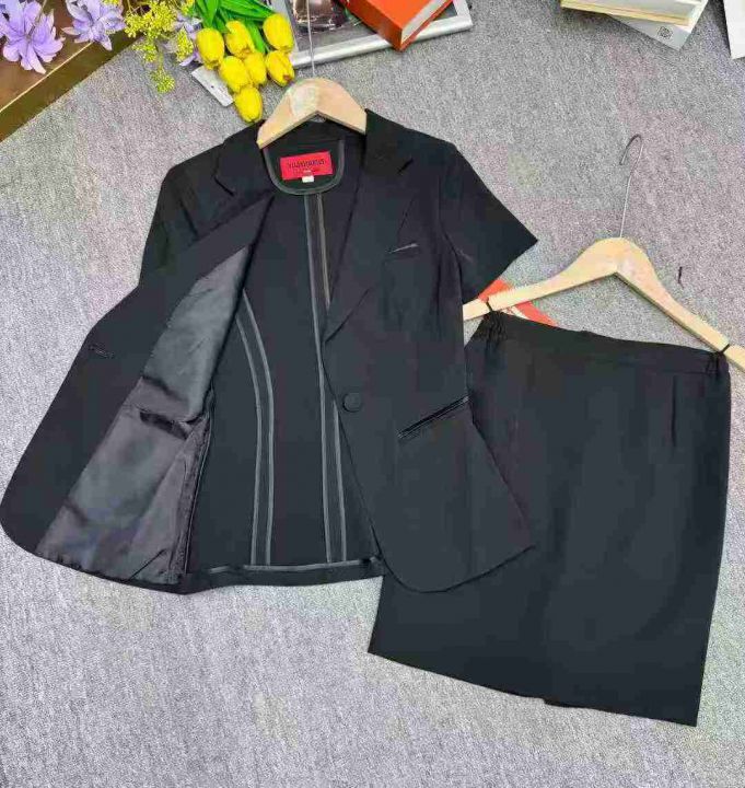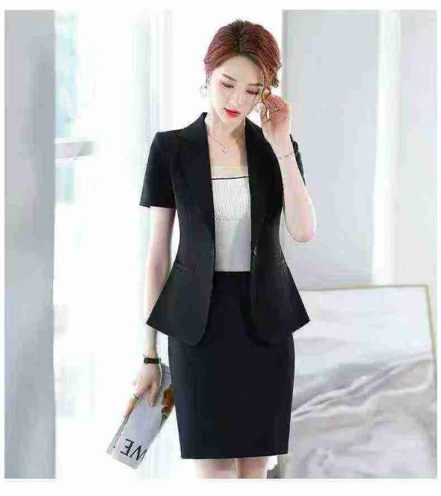 捡漏41套黑色短袖小西装配裙子显瘦夏季修身百搭职业装套裙,防尘袋包装,码数S-M码,货号1017#41