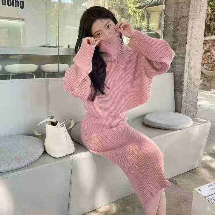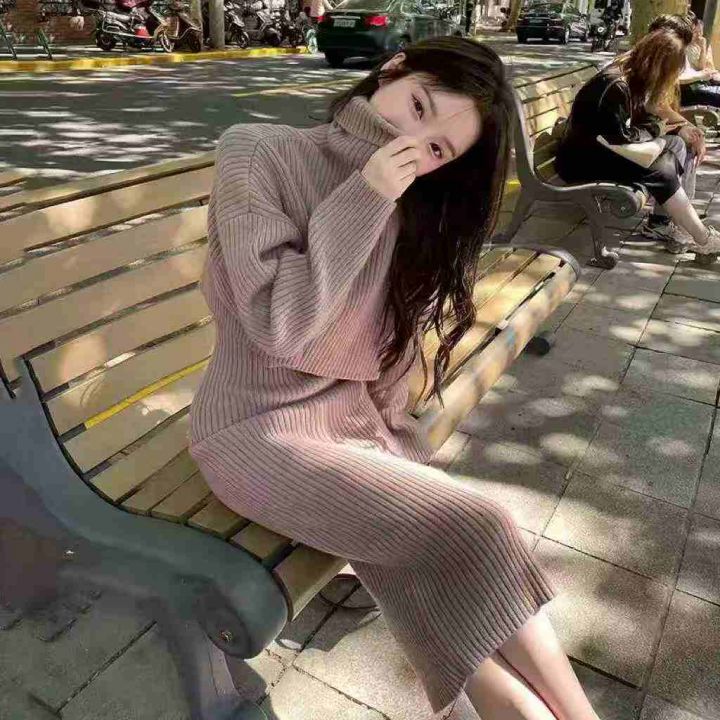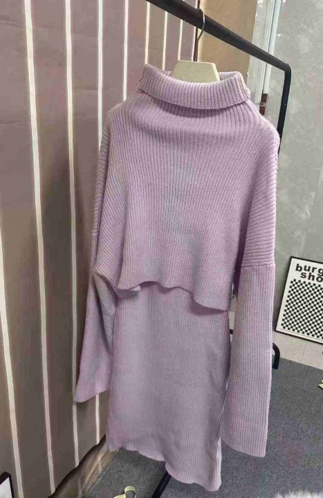 全清24.9元。2025年新款名媛感打底高领毛衣长袖针织连衣裙子,女秋冬两件套装,独立包装吊牌,颜色前4张为准,26套 均码