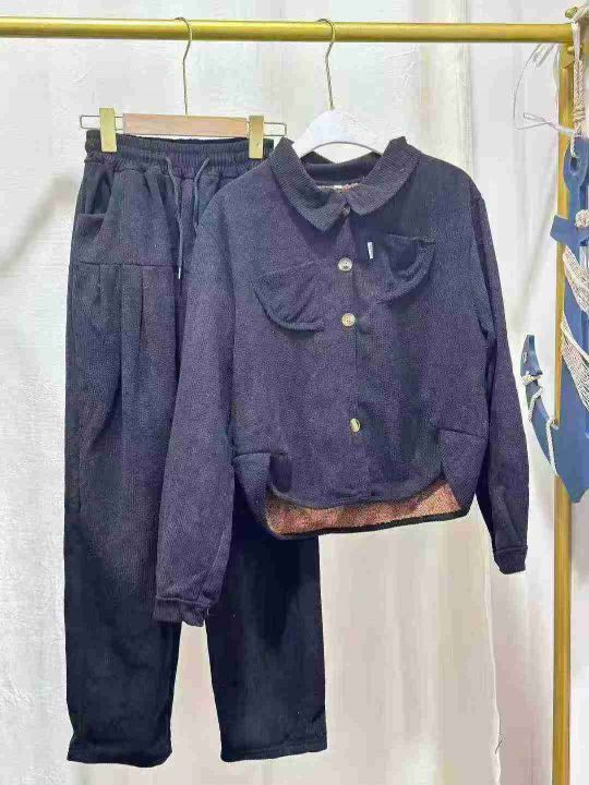 翻领灯芯绒保暖套装女2025冬季加绒加厚宽松显瘦卫衣直筒裤两件套,数量230套,码数m-2xl,独立包装,全清18.8元
