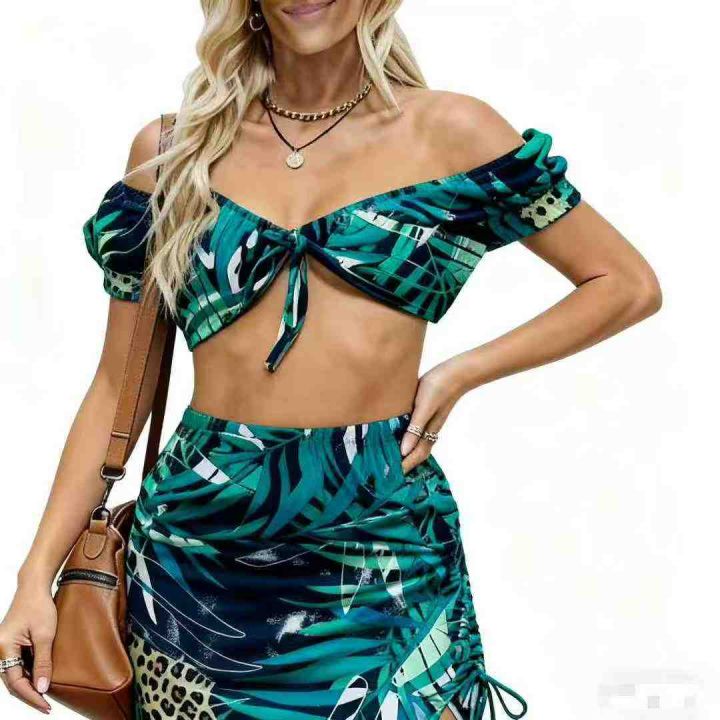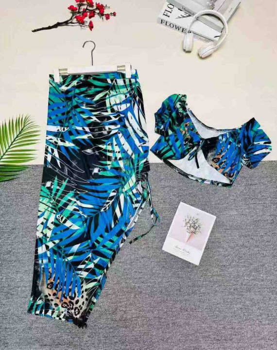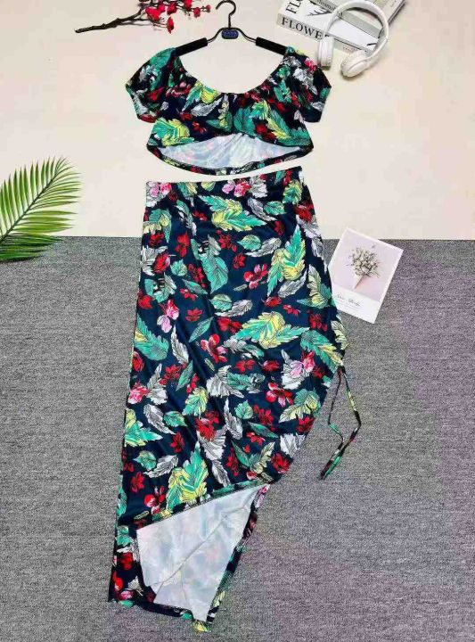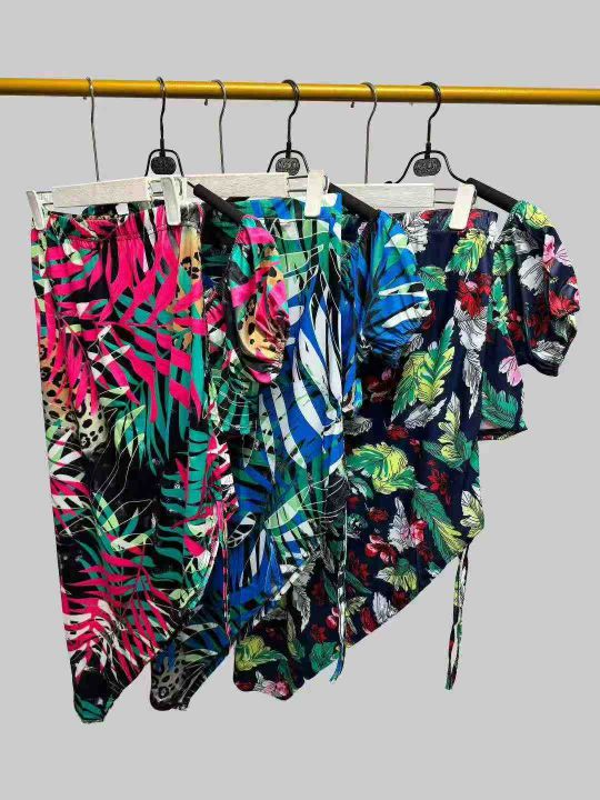 欧美时尚新款洋气数码花卉短上衣+不规则褶皱半身裙两件套,图片款,数量285套左右,码数S-2XL码,品质好,拉链式独立包装。