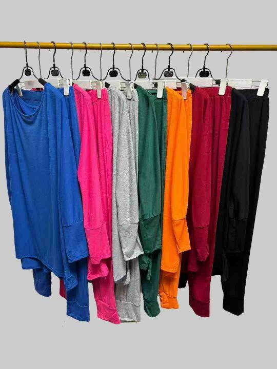 棉质休闲长袖长裤套装,数量560套左右,码数S-2XL,整款多色,下摆开衩设计,品质好,拉链式独立包装。
