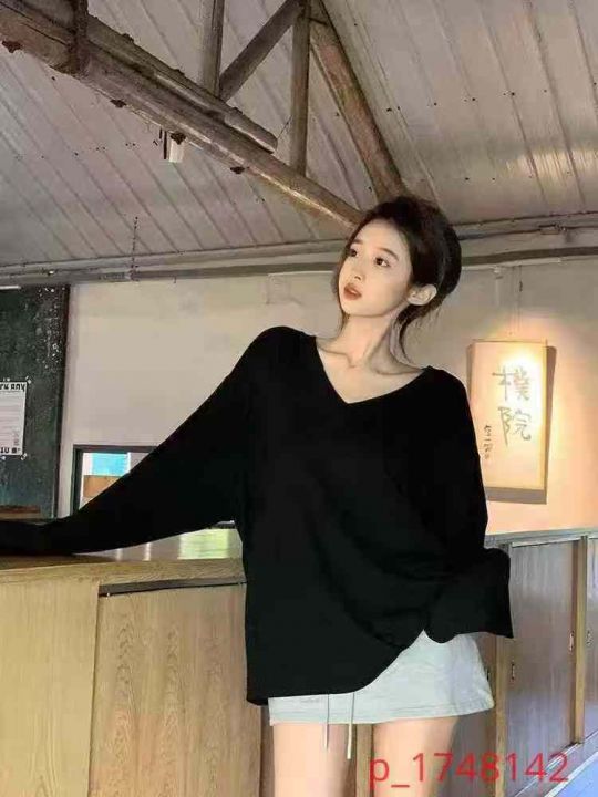 700件纯色V领|圆领男女同款休闲宽松长袖T恤上衣 S...