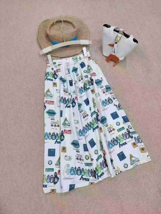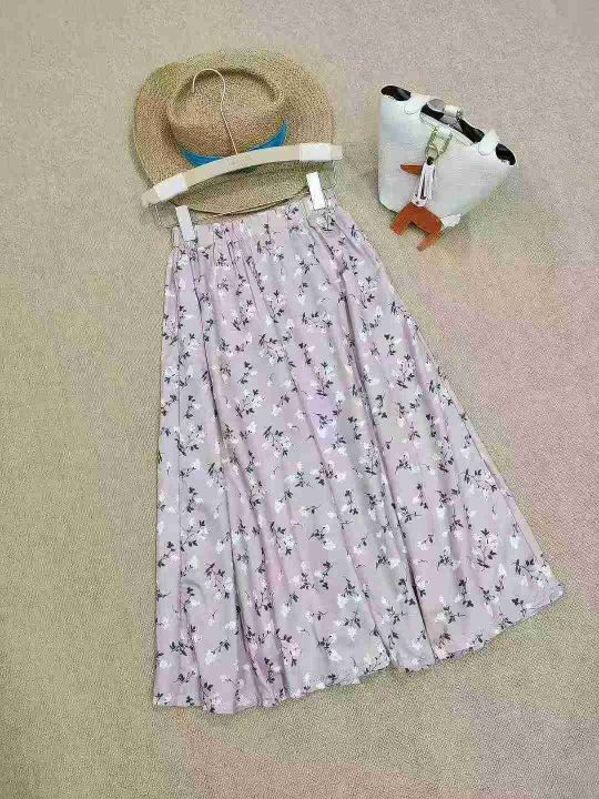 [月亮]:甜美森系夏季休闲松紧腰半身裙