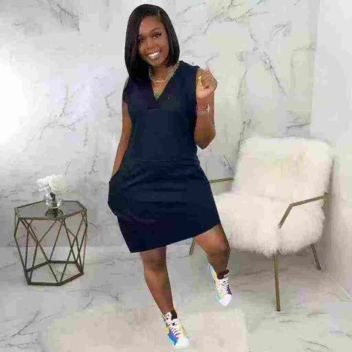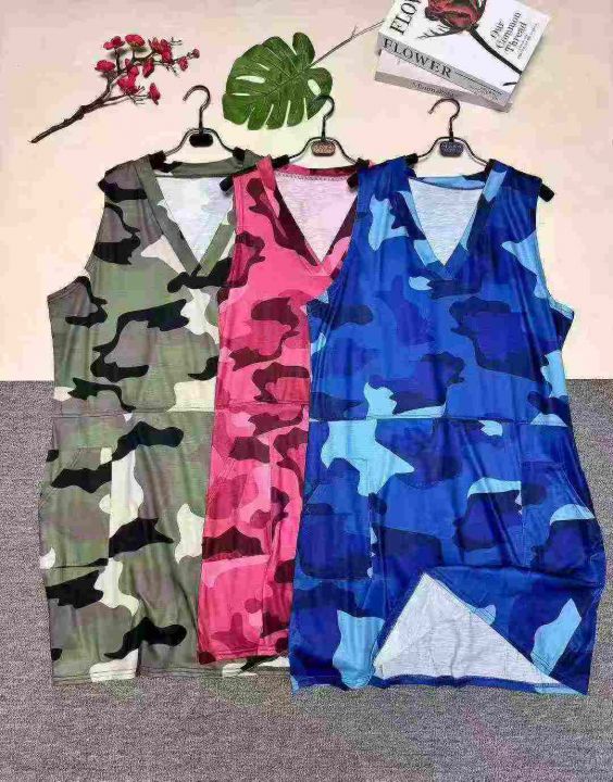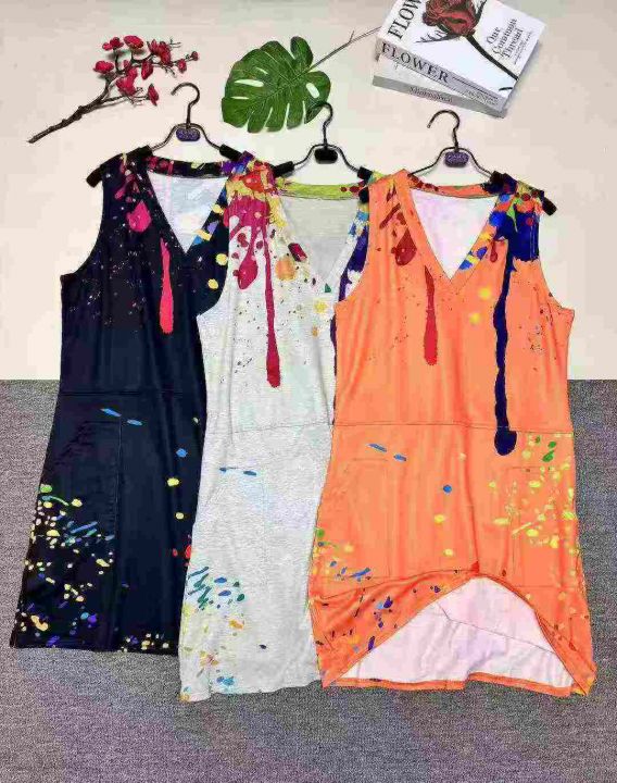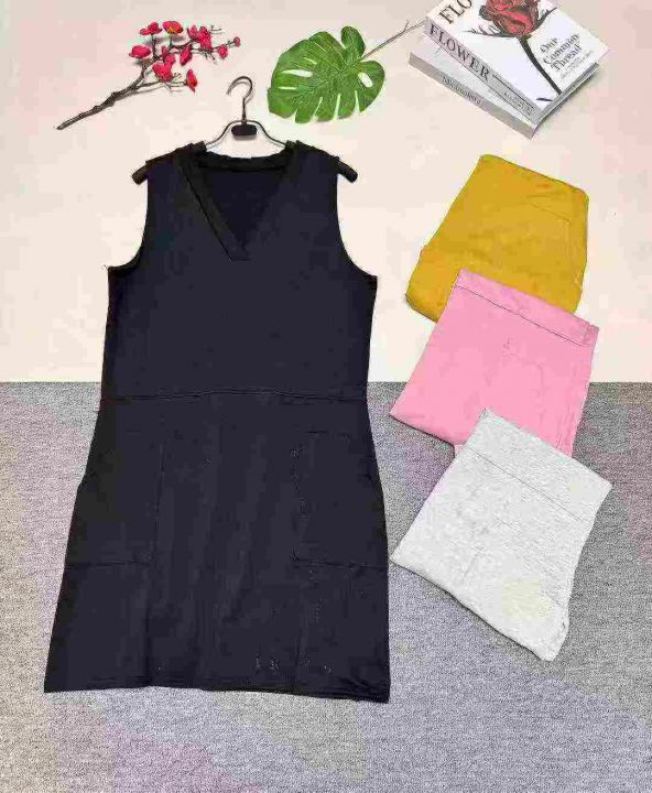 欧美时尚宽松双口袋V领无袖背心连衣裙,图片款整款多色,数量1100件左右,码数S-2XL,高弹力品质好,拉链式包装。