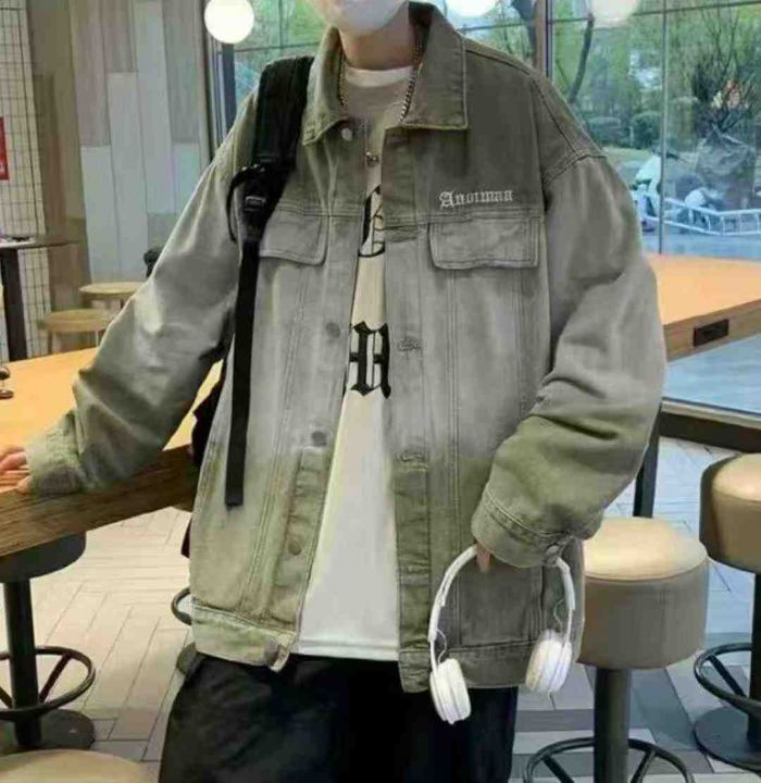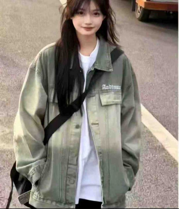 复古宽松军绿色工装翻领长袖牛仔外套,单款单色,独立包装,数量165,XS-L...