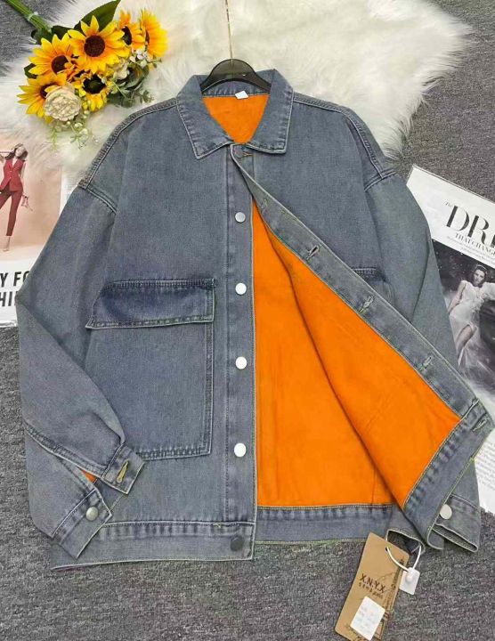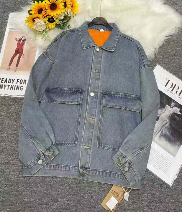 秋冬新款洗水棉男女同款加绒加厚牛仔外套,独立包装带...