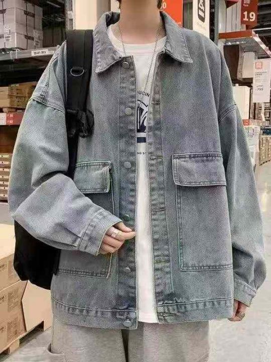 复古宽松军绿色工装翻领长袖牛仔外套,单款单色,独立包装,数量165,XS-L...