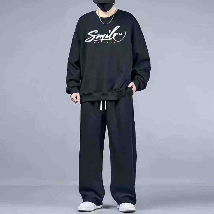 工厂回收1580套外贸宽松大版加绒休闲卡通印花卫衣套装,码数S-2XL。圆领多连帽比较少,版型质量做工都很好,内里加绒,全部独立包装。分货➕1