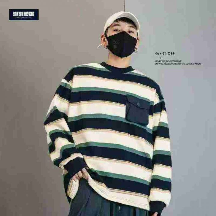 195件,美式潮牌重磅小口袋条纹圆领卫衣日常休闲外套...