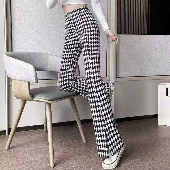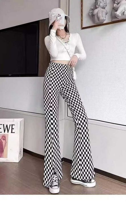 棋盘格子喇叭裤529件,清8.5,面料微弹,松紧腰,裤脚...