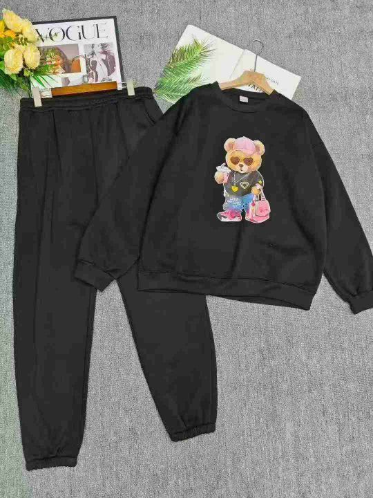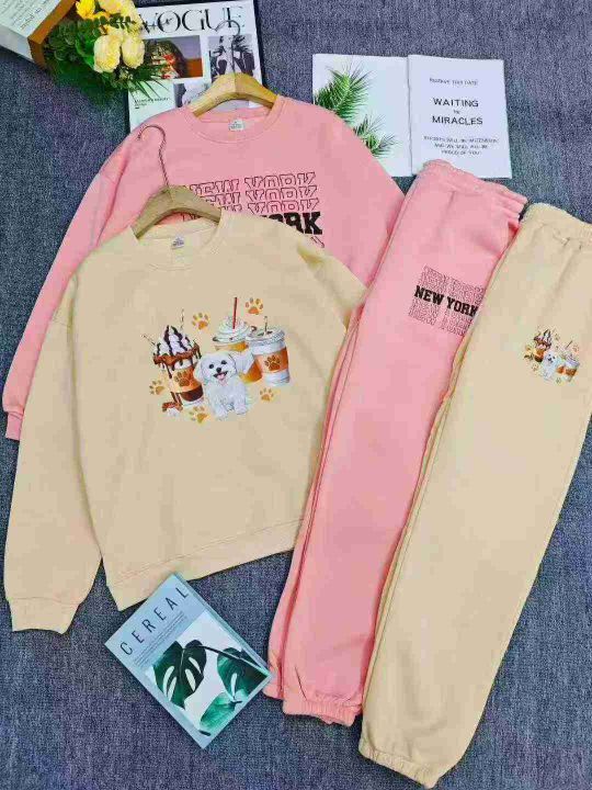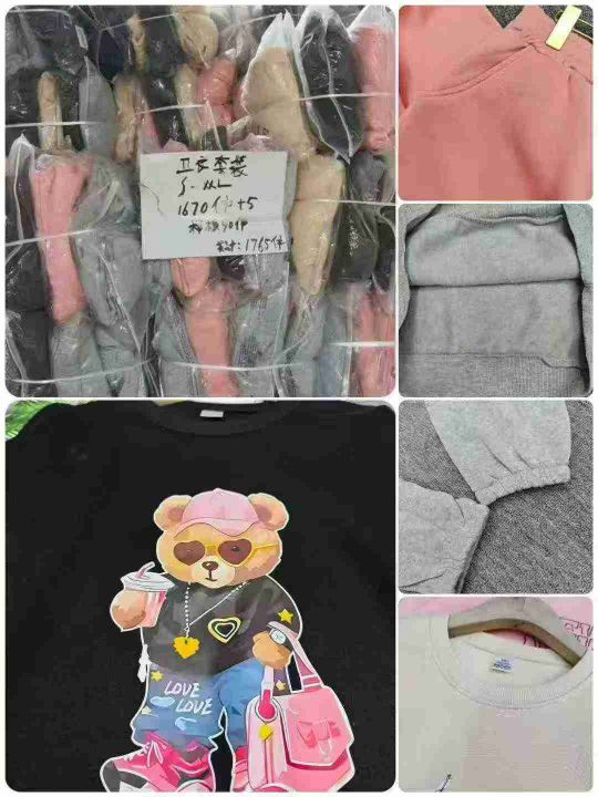 工厂回收1580套外贸宽松大版加绒休闲卡通印花卫衣套装,码数S-2XL。圆领多连帽比较少,版型质量做工都很好,内里加绒,全部独立包装。分货➕1