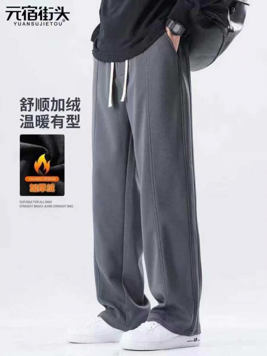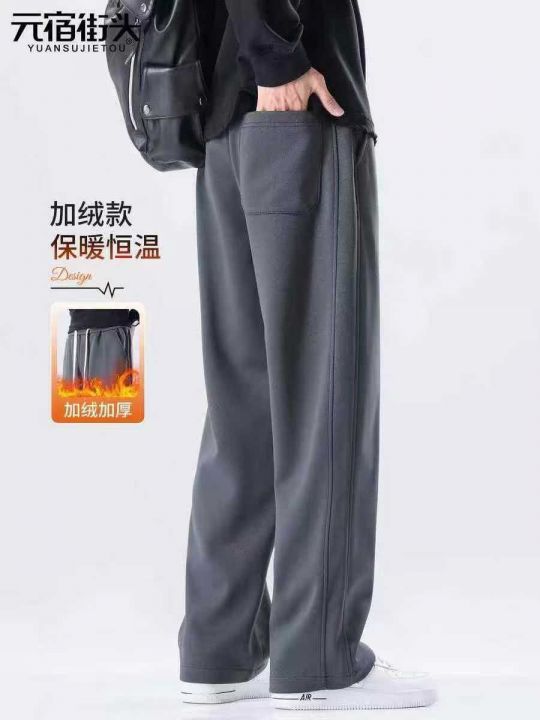 男装潮牌加绒阔腿卫裤加厚保暖松紧腰阔腿宽松垂感男士...