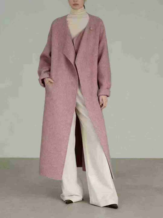 91件秋冬韩系高级粉色毛呢时尚中长款法式复古毛呢外套,单款单色,码数S—X...