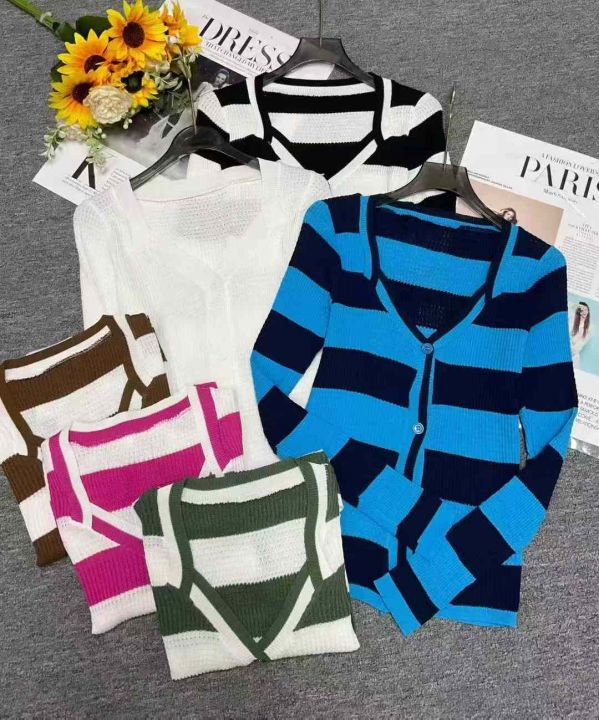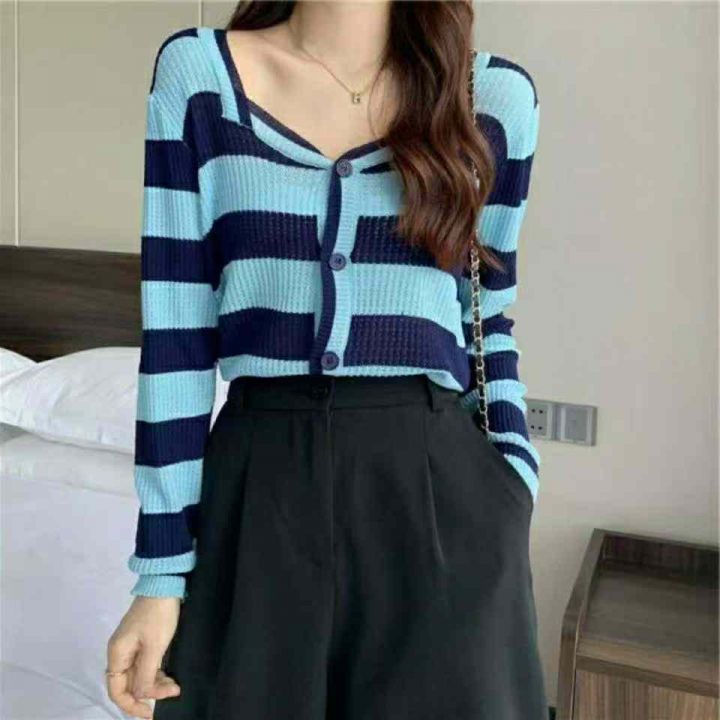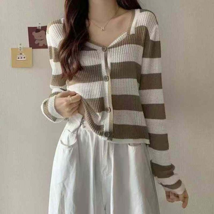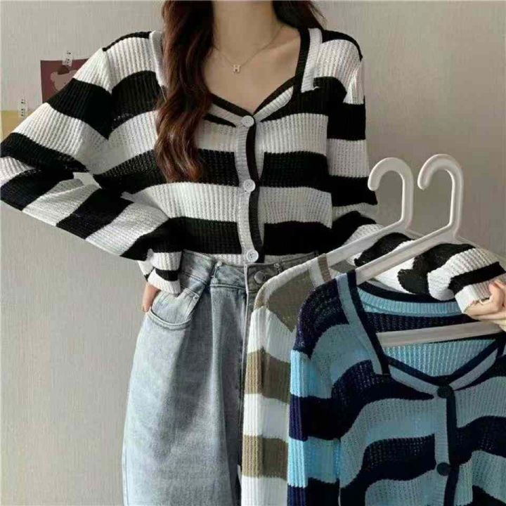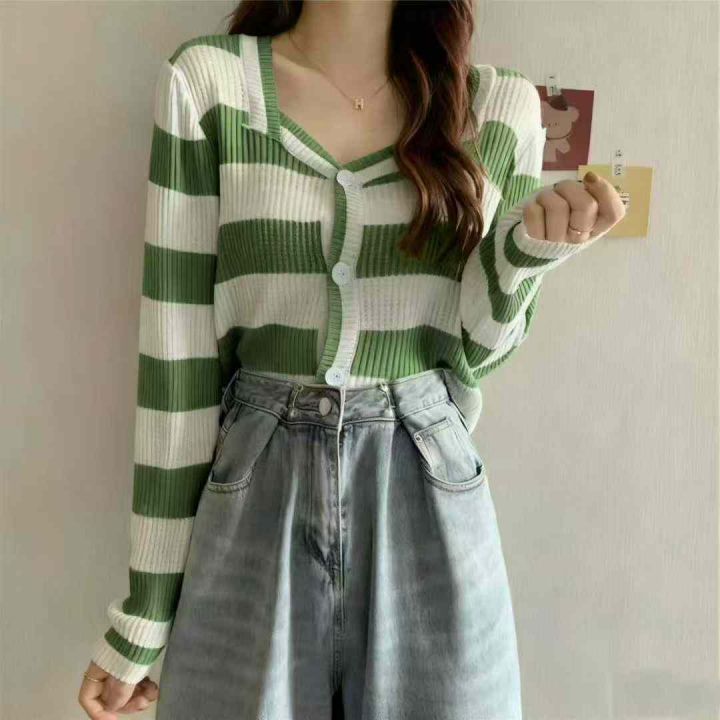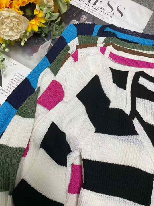秋冬新款韩系撞色条纹高级感针织毛衣开衫,独立包装均码面料软糯舒适弹力大,969件,全清6.9元超低价秒杀!分货加一!