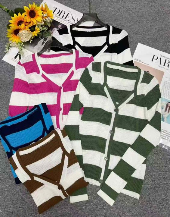 秋冬新款韩系撞色条纹高级感针织毛衣开衫,独立包装均...