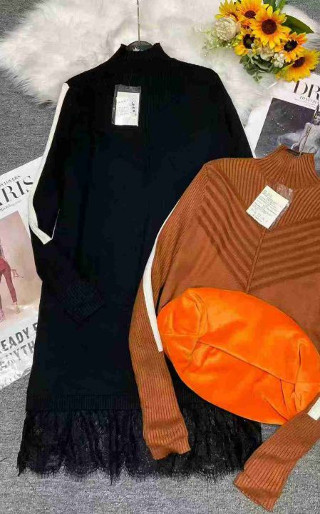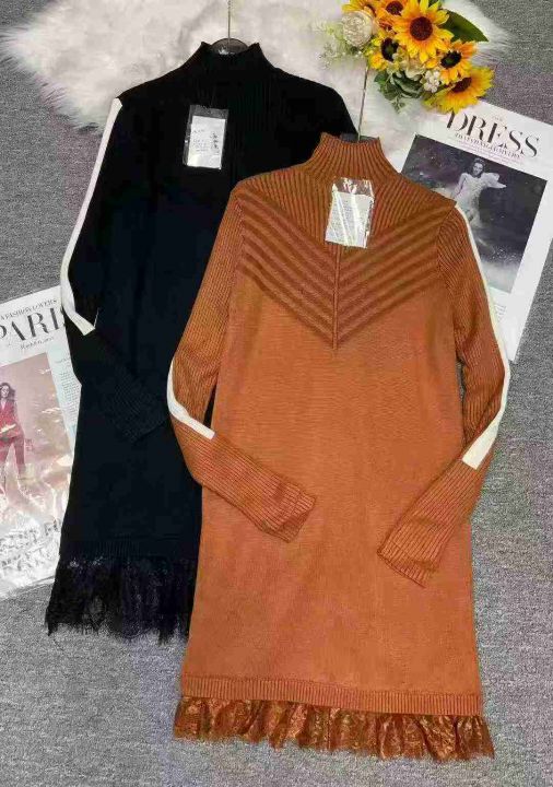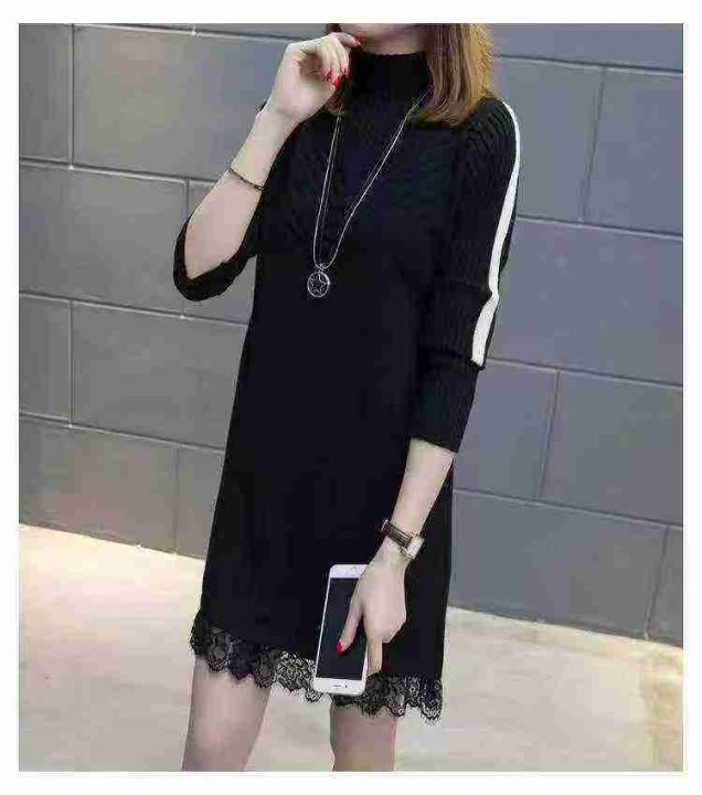 冬季新款配大衣中长款加绒加厚蕾丝边拼接宽松半高领针织连衣裙,独立包装带吊牌,均码面料软糯厚实弹力大,102件,全清8.9元超低价秒杀!