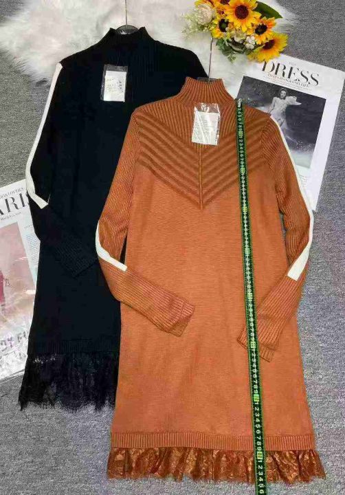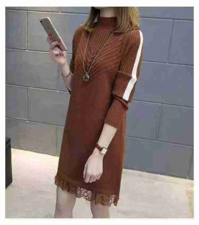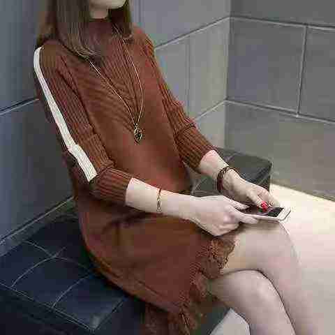 冬季新款配大衣中长款加绒加厚蕾丝边拼接宽松半高领针织连衣裙,独立包装带吊牌,均码面料软糯厚实弹力大,102件,全清8.9元超低价秒杀!