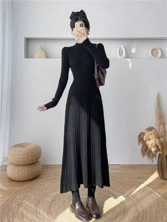 秋冬新款法式复古黑色大长款包芯纱套头毛衣连衣裙,独立包装,均码面料软糯...