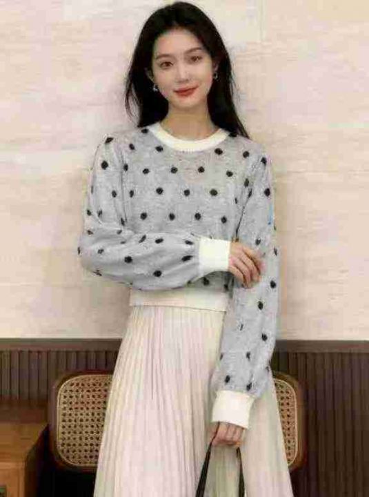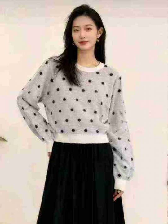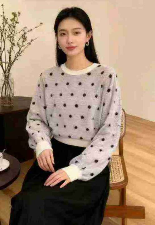 秋冬新款宽松短款慵懒风圆领北极绒套头毛衣,独立包装...