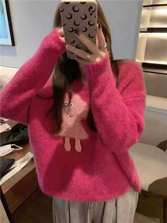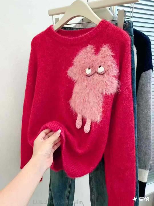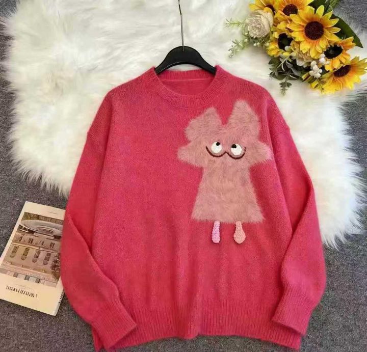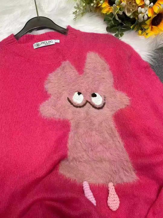 秋冬新款宽松韩系复古慵懒风小怪兽立体图设计款圆领羊毛马海毛套头毛衣,独立包装,均码宽松版,面料软糯舒适,160件左右,全清7.9元超低价秒杀!
