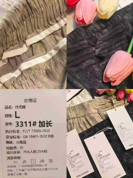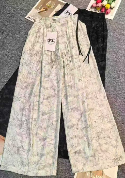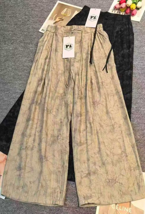 新中式国风水墨画扎染盘扣显瘦阔腿裤,腰部包边,三种裤型,2000件左右,尺码S-XXL,分货加一
