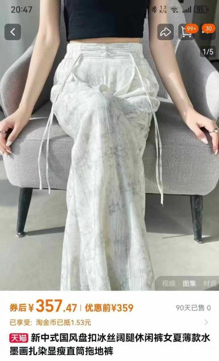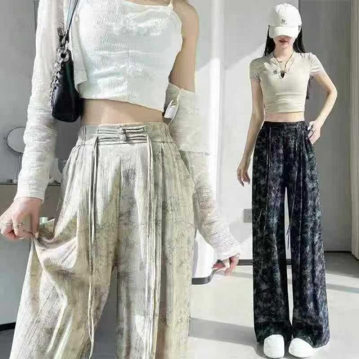 清仓:12.8一件新中式国风水墨画扎染盘扣显瘦阔腿裤,...