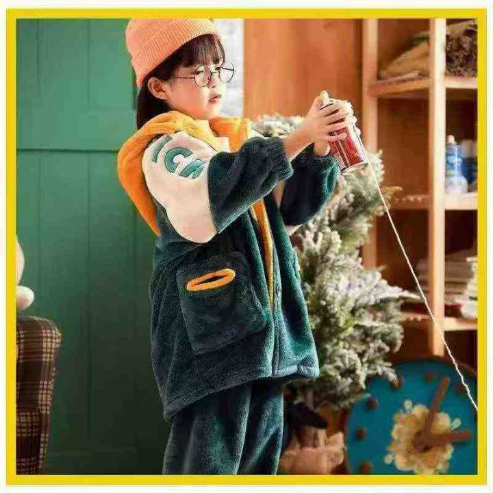 童装睡衣冬季加绒加厚款珊瑚绒男女童宝宝法兰绒秋冬天家居服,数量:185套,码数:10-12-14-16码,有独立包装,13.8元清