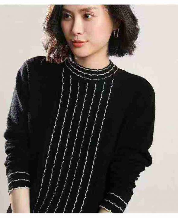 秋冬新款宽松百搭波浪纹精品时尚精品包芯纱套头毛衣,...