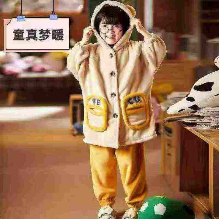 童装睡衣冬季加绒加厚款珊瑚绒男女童宝宝法兰绒秋冬天...