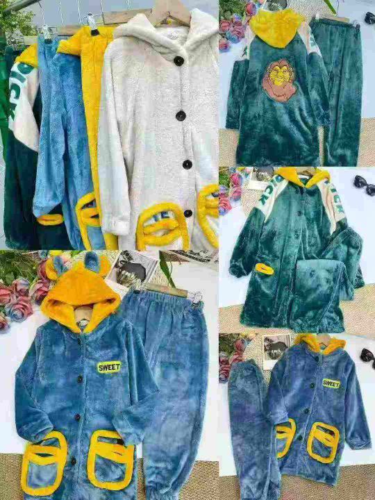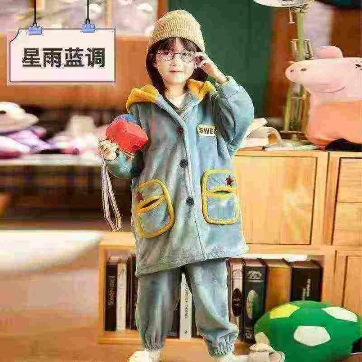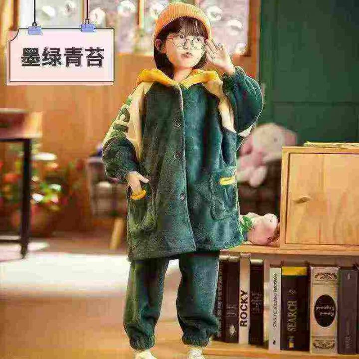 童装睡衣冬季加绒加厚款珊瑚绒男女童宝宝法兰绒秋冬天家居服,数量:185套,码数:10-12-14-16码,有独立包装,13.8元清
