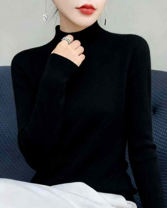 秋冬新款宽松百搭净版简约宽松2条毛包芯纱套头毛衣,...