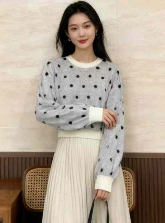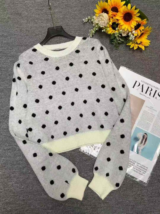 秋冬新款宽松短款慵懒风圆领北极绒套头毛衣,独立包装...