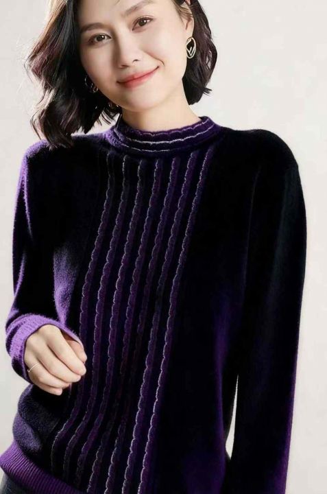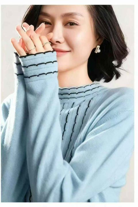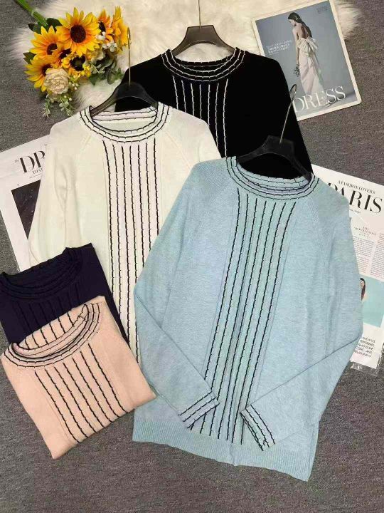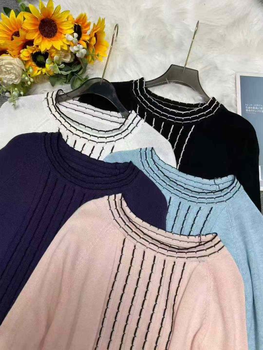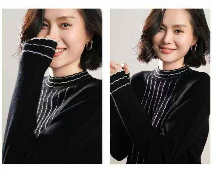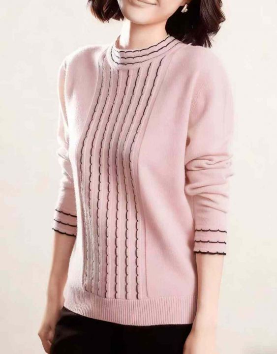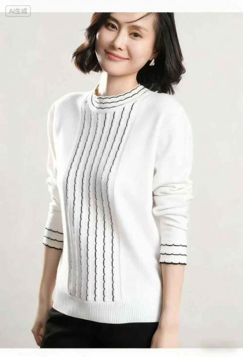 秋冬新款宽松百搭波浪纹精品时尚精品包芯纱套头毛衣,...