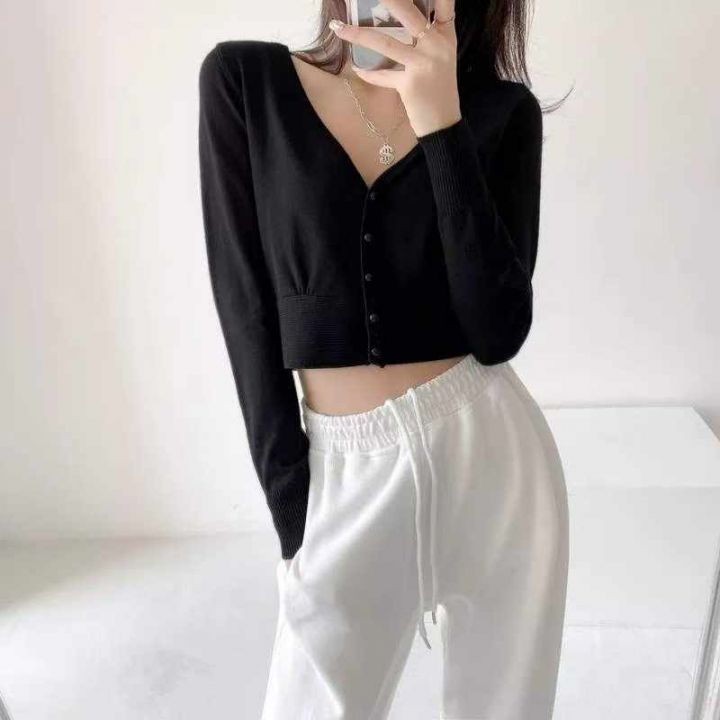 品牌原单韩系高腰短款宽松纯棉针织毛衣开始,独立包装带吊牌,均码年龄软糯...