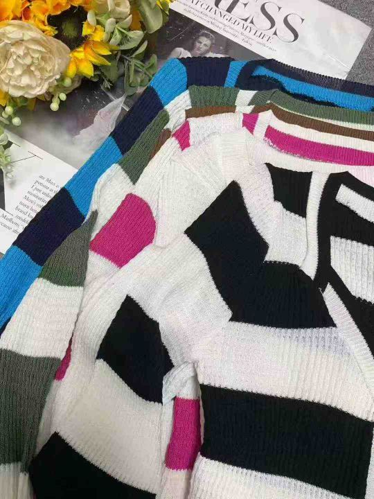 秋冬新款韩系撞色条纹高级感针织毛衣开衫,独立包装均...